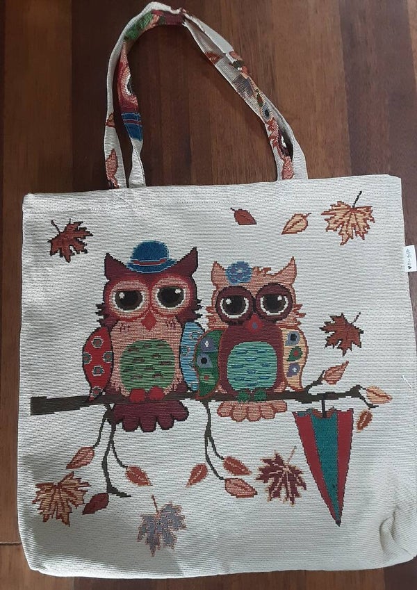 Ontdek deze exclusieve handgemaakte shopper met een prachtige uilenopdruk, gemaakt van duurzaam gobelinstof. Perfect voor een stijlvolle en praktische touch aan je outfit!