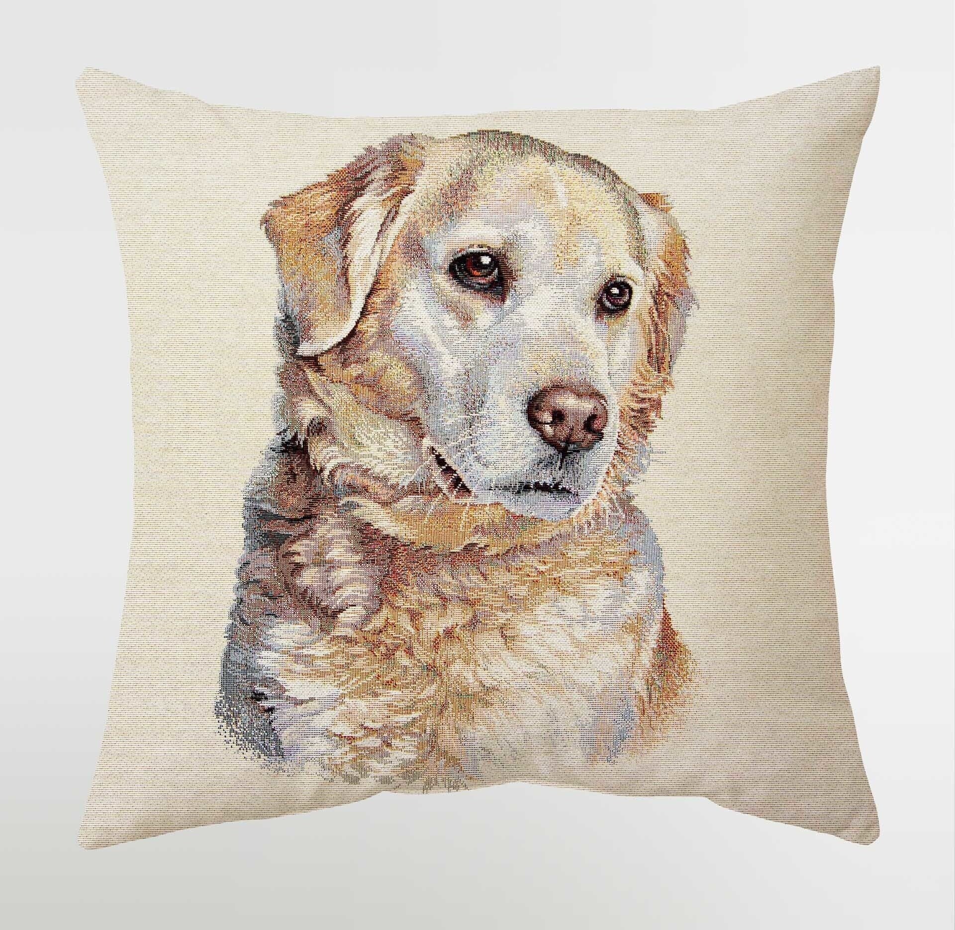 Geef je interieur een vrolijke en persoonlijke touch met dit handgemaakte kussen, voorzien van een prachtige ingeweven print van een Golden Retriever. Perfect voor hondenliefhebbers en een stijlvolle aanvulling op je bank, bed of favoriete leesstoel.