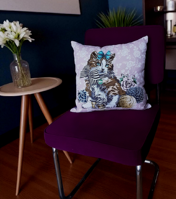 Dit unieke kussen voegt direct sfeer toe aan je woonkamer, slaapkamer of hobbyhoek. Een leuk cadeau voor kattenliefhebbers!