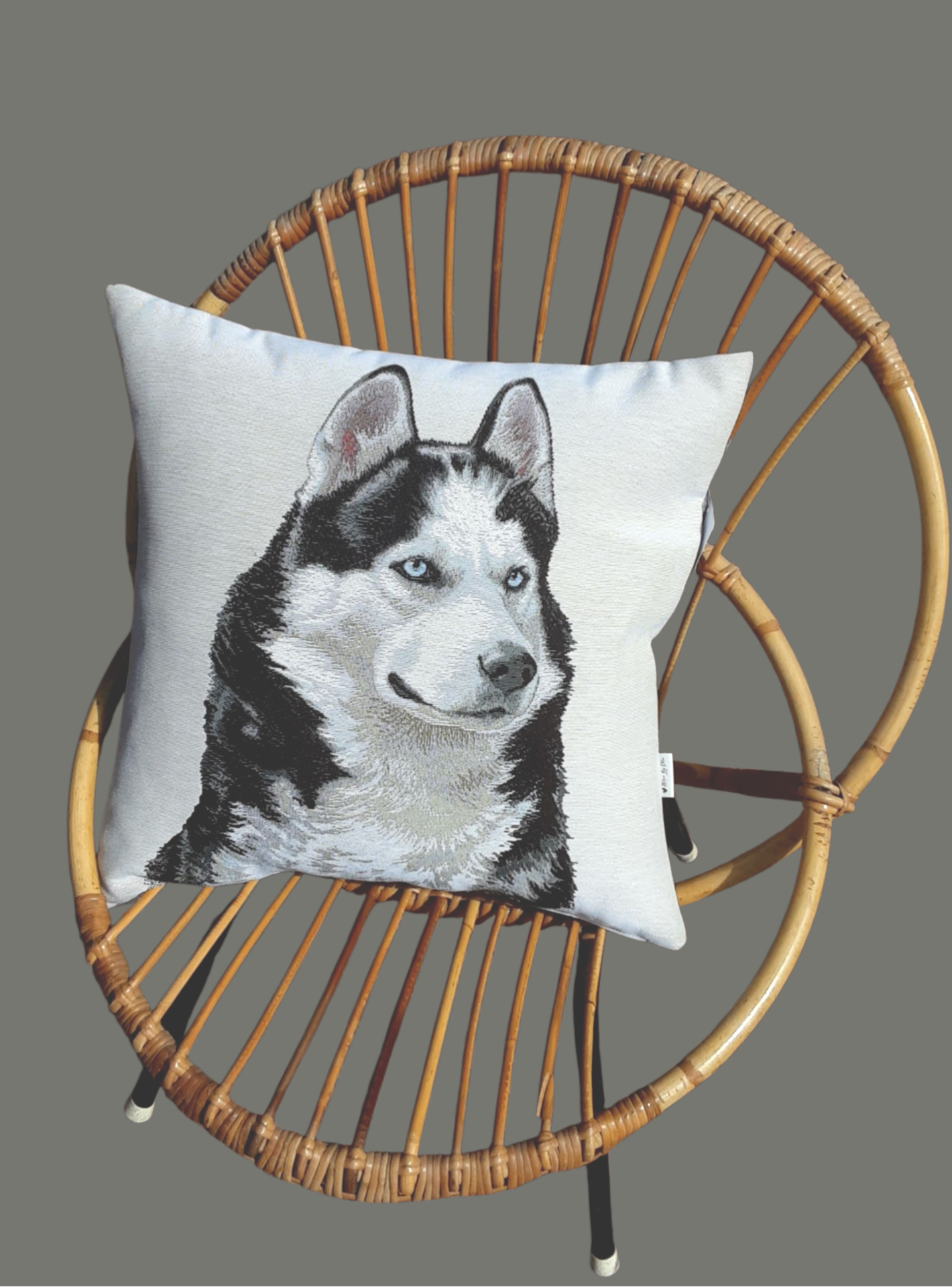 Geef je interieur een vrolijke touch met dit unieke, handgemaakte kussen met ingeweven print. Perfect voor hondenliefhebbers en een speels accent op de bank, bed of favoriete leesstoel.