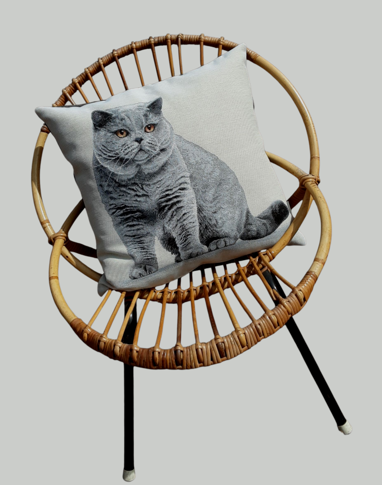 Breng de speelse charme van katten in huis met dit schattige decoratieve kussen met een afbeelding van een Britse Korthaar. Perfect voor kattenliefhebbers die houden van een vrolijke en gezellige sfeer. Of je nu zelf een kattenbaasje bent of gewoon dol bent op deze schattige viervoeters, dit kussen is een must-have voor op de bank, bed of in je favoriete leeshoekje.