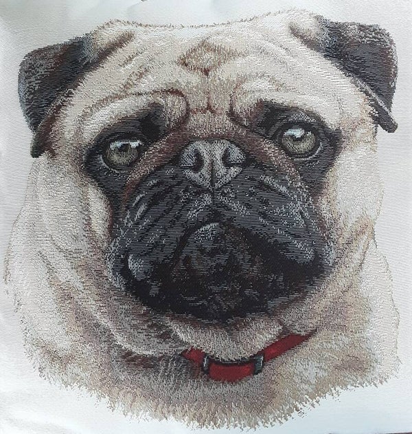 Geef je interieur een vleugje speelse elegantie met dit handgemaakte kussen met een schattige mopshond in gedetailleerd gobelinweefsel. Het stevige gobelinstof zorgt niet alleen voor een luxe uitstraling, maar is ook duurzaam en slijtvast, waardoor je jarenlang van dit kussen kunt genieten.