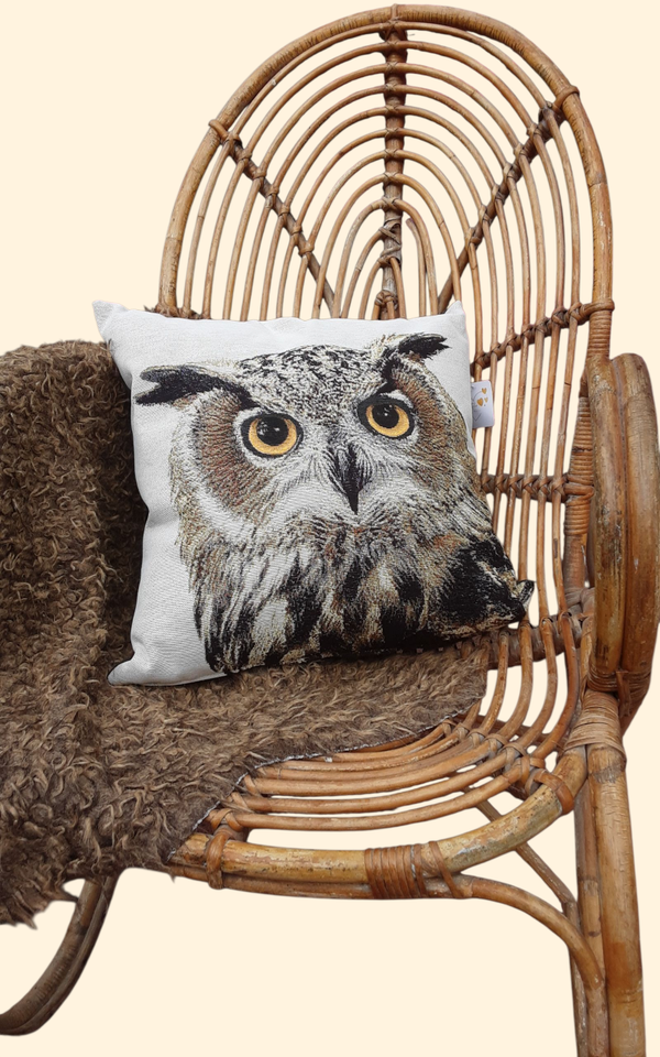 Voeg een vleugje mysterie en natuurmagie toe aan je huis met dit prachtige decoratieve kussen met een afbeelding van een uil. Perfect voor liefhebbers van dieren, bosstijl of bohemian interieurs. Met zijn indrukwekkende uitstraling brengt deze uil wijsheid, charme en een tikje wildernis in jouw woonruimte.