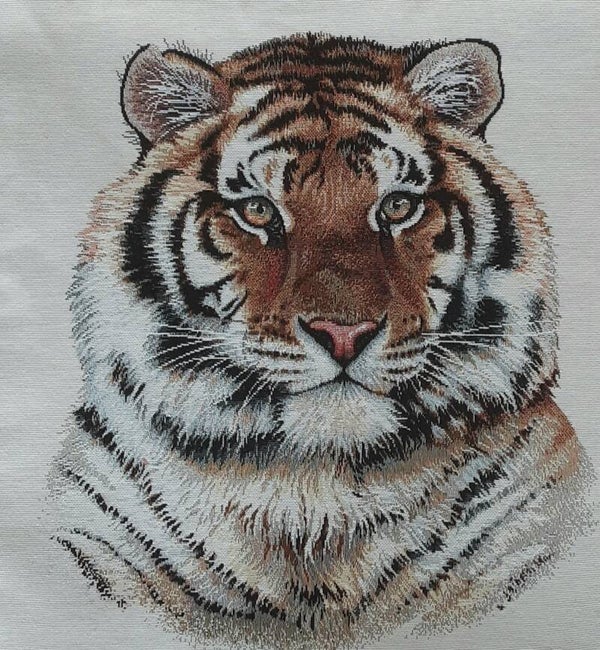 Uniek handgemaakt kussen met ingeweven afbeelding van een tijger – Stijlvol en natuurlijk!