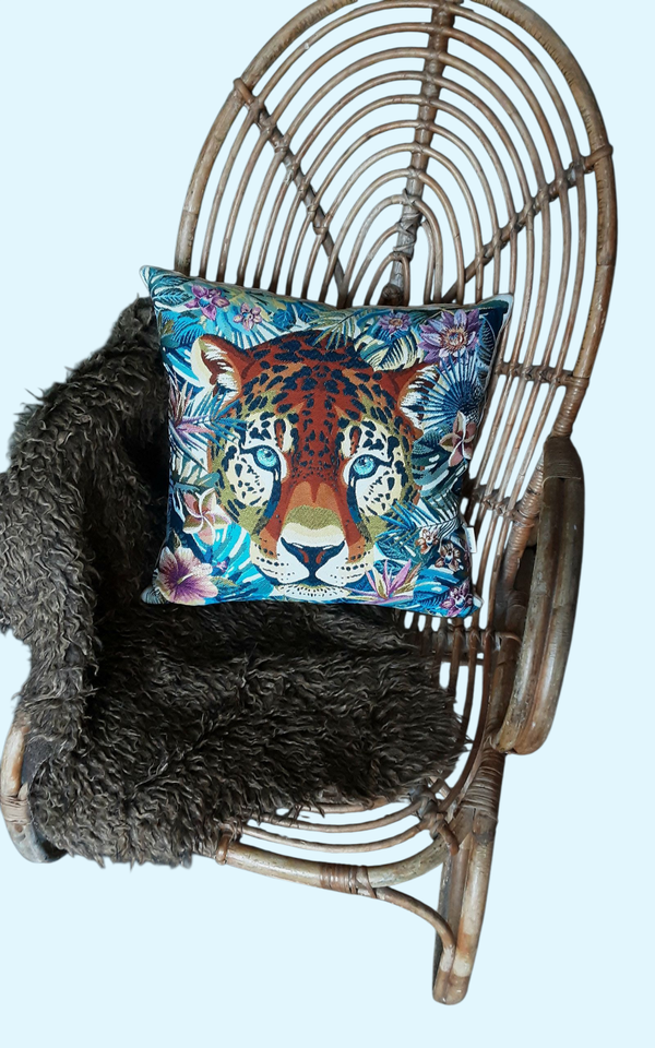 Uniek handgemaakt kussen met ingeweven panter – Stijlvol en natuurlijk!