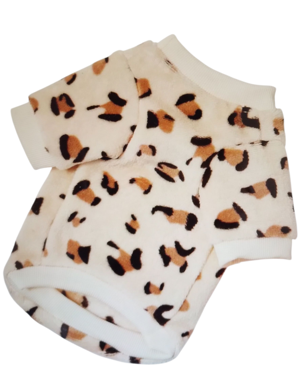 Geef je trouwe viervoeter een stoere en comfortabele look met deze crème/camel/zwarte tijgerprint sweater. Gemaakt van ultra-zachte fleece, zodat je hond het heerlijk warm heeft tijdens de wandeling.