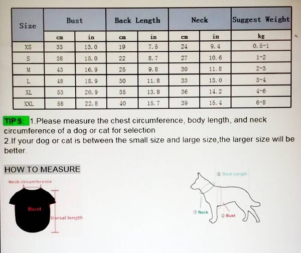 Mocht je twijfelen tussen een maat dan is het het beste om de grootste maat te kiezen. Zie de laatste afbeelding voor het maattabel van dit hondenjasje.