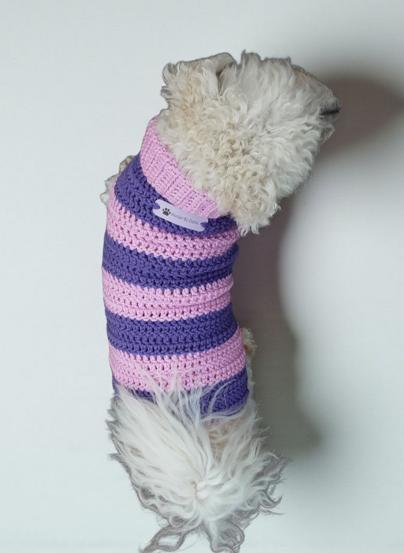 Gehaakte Hondentrui met Col, Paars/Roze - Maat S
